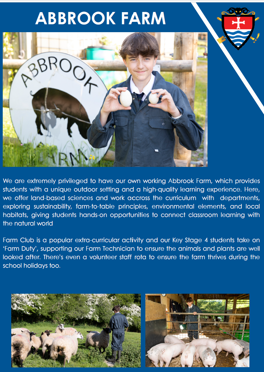 We are extremely privileged to have our own working Abbrook Farm. This enables children to have an unrivalled quality of learning within this unique outdoor setting.